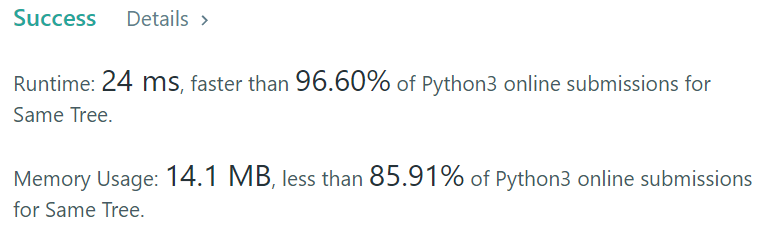 def isSameTree(self, p: Optional[TreeNode], q: Optional[TreeNode]) -> bool: