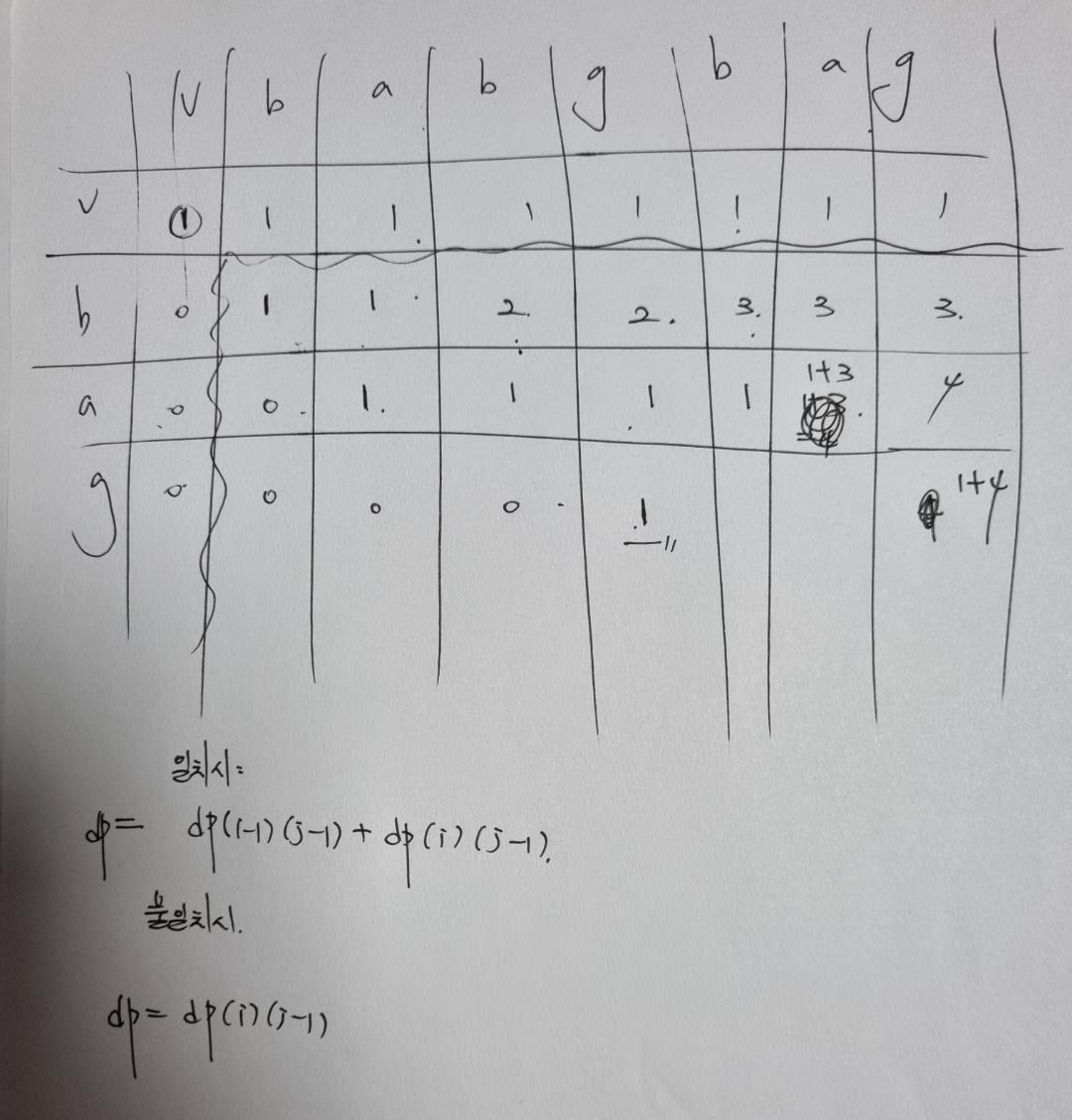 dp = [[0] * (len(s)+1) for _ in range(len(t)+1)]