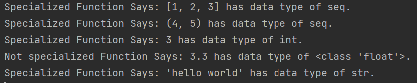print(f"Specialized Function Says: {seq!r} has data type of seq.")