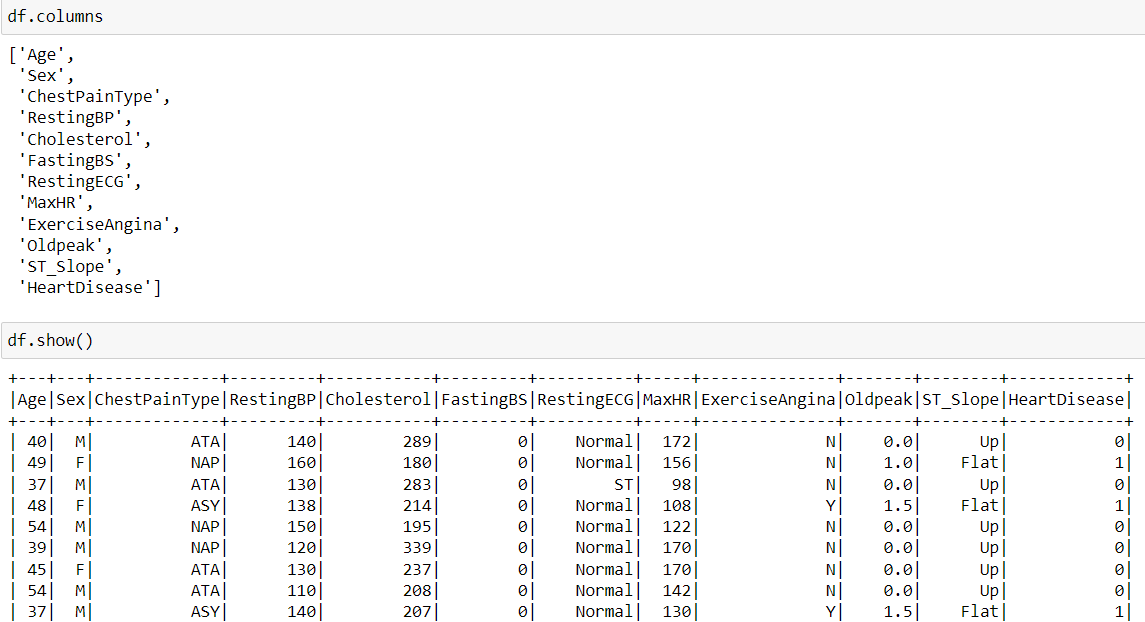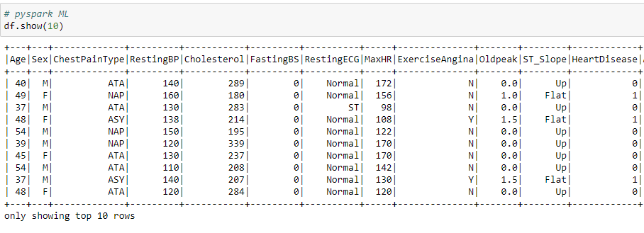 df = spark.read.csv('heart.csv', header=True, inferSchema=True)
