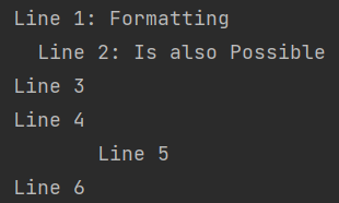 Line 6""".formatted("Formatting", "Is also Possible");